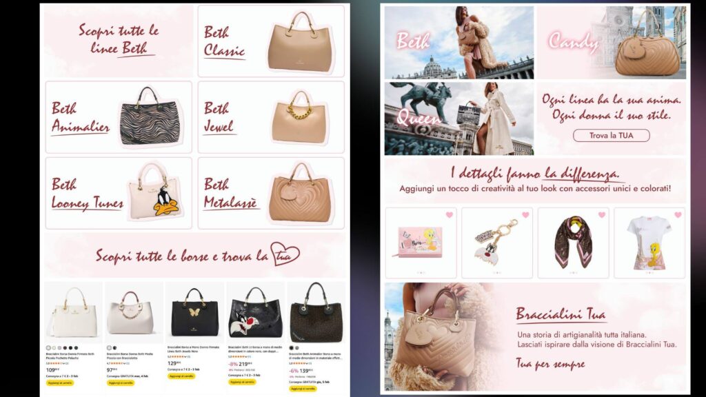 L’obiettivo era trasferire l’identità del brand all’interno dell’ecosistema marketplace, incrementando il posizionamento e le vendite, mantenendo coerenza visiva e senza snaturare l’immaginario del marchio