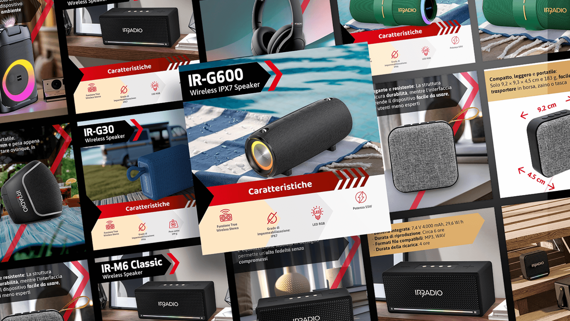 Irradio è un brand consumer nel settore audio ed elettronica, con un posizionamento orientato a performance, design e accessibilità.