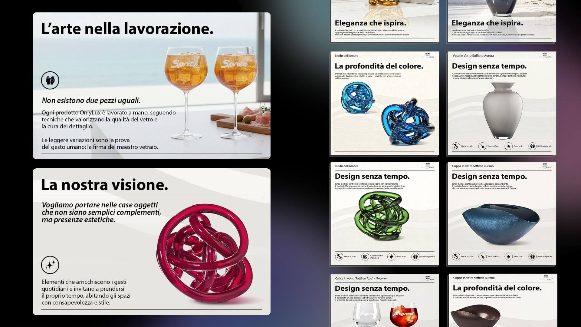 Onlylux è un’azienda artigianale fiorentina specializzata nella lavorazione del vetro soffiato, con una produzione di oggetti unici per la tavola e l’arredo.
